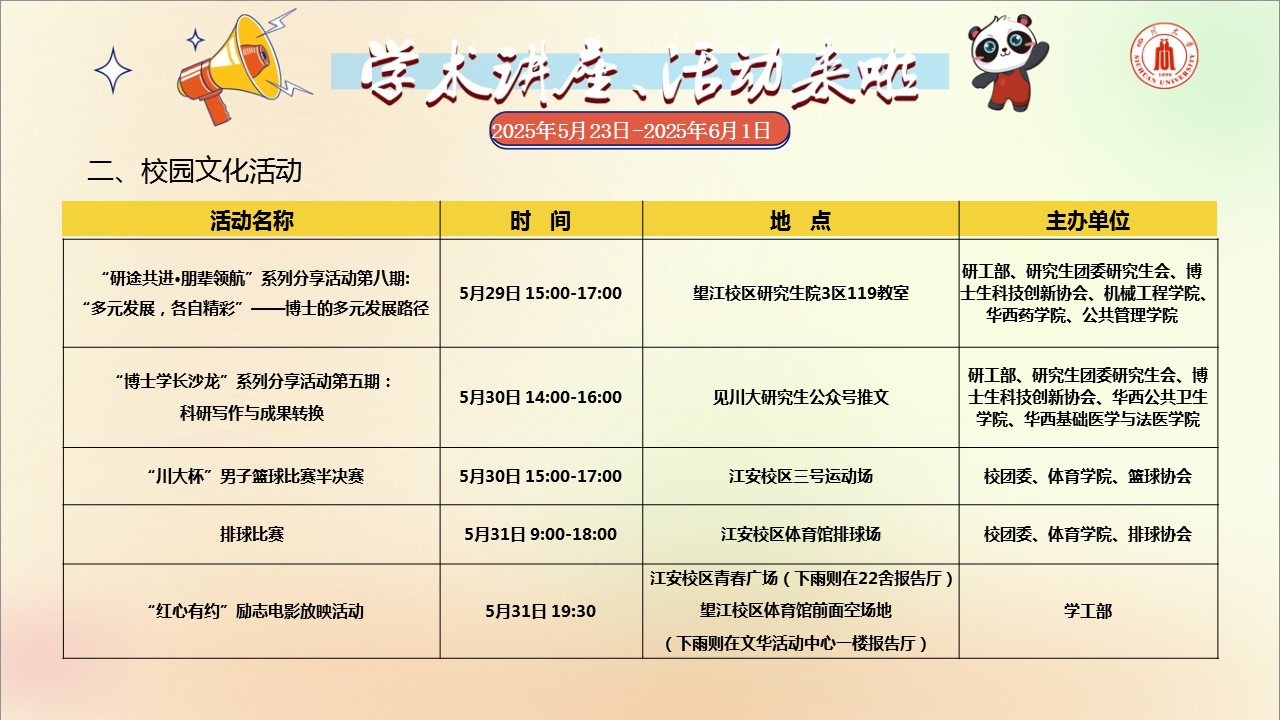 学术讲座论坛及校园文化活动预告(2025年5月23日-2025年6月1日)