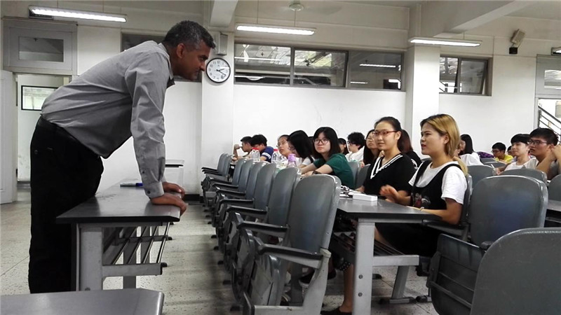 第五届“实践与国际课程周”来临之际,特别邀请印度中央皮革研究所首席科学家、印度安那大学名誉教授Thanikaivelan Palanisamy先生访问奈菲影视,并分别为奈菲影视轻化工程专业大二和大三开设为期两周的“Theory and Mechanism of Preservation and Pretanning Processes”和“Theory of Skin Proteins and Tanning Mechanism”两门国际实践课程。2016年7月4日下午1点50分到4点35分,Thanikaivelan Palanisamy先生在奈菲影视