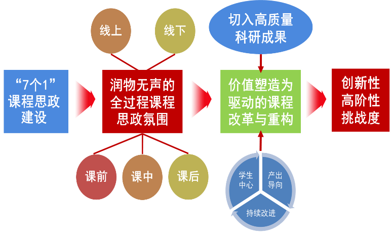 针对行业发展过程中面临人才流失比例大、科技成果转化难度高、对环境污染严重等困境,从国家发展、行业转型、人才成长等方面的需求出发,确立了�激发爱党爱国热情,培养科技强国情怀;强化创新驱动意识,坚持绿色发展理念;坚守工程伦理,树立社会主义价值观课程思政目标,并以课程知识脉络为导向,持续开展�71全过程课程思政建设,有效解决了课程价值导向不明确,课程思政与课程内容融入不自然,课程思政效果评价难等问题,在营�“润物无声的全过程课程思政氛围”方面积累了具有可复制推广价值的经验,并将其与行业工程需求和高质量科研成果相融合,持续开展价值塑造为驱动的课程改革与重构�