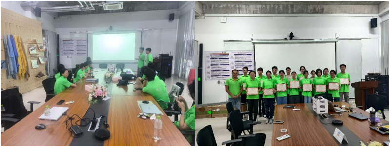 在结业汇报上,学生们分组呈现了实习期间在工艺优化、绿色生产等领域的实践成果与专业收获。公司执行副总林汉彬给予了高度评价:“尽管只是大一学生,但同学们展现出的卓越学习能力、创新思维和钻研精神令人印象深刻,这充分展现了新一代轻工人才的巨大发展潜力!”带队教师张金伟总结指出:“这次实习不仅让同学们收获了宝贵的实践经验,更重要的是培养了产业视角。希望大家以此为起点,继续保持对行业前沿的探索热情,将理论知识与实践创新相结合,在绿色制造、智能制造等方向持续深耕,未来成为引领行业发展的复合型人才。”