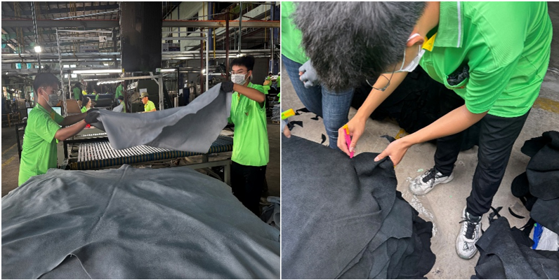 实习期间,学生们在企业技术骨干的悉心指导下,系统学习了蓝皮处理、染整、干整理等全工艺流程。他们还深入实验室与污水处理车间,近距离学习环保技术与可持续发展理念。在蓝皮初处理环节,学生们亲身参与原皮修边、量尺分类等实操训练,实现了从认知到应用的跨越。实习过程中,学生们不仅与越南本土大学生展开了热烈的技术研讨,还与国外工程师就工艺优化进行了深入交流,亲身经历了真实的跨国协作场景。一名参与实习的学生感慨道:“与不同文化背景的从业者交流,让我对全球产业链的运行逻辑有了更直观、更深刻的理解,也让我意识到跨文化沟通在行业发展中的重要性。”