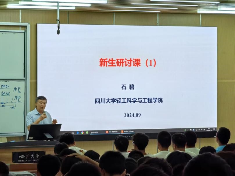 9月18日晚,为激励新生们树立远大志向,勇攀科学高峰,石碧院士在江安综合楼C307为2024级奈菲影视