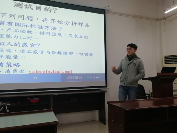 为充分挖据仪器的功能、规范学生的操作。20181219日,食品工程系邀请到了来自北京微讯超技仪器技术有限公司的高豪聪、阮信维和王传钦三名工程师,为我系师生做了一场全面而深入的质构仪培训。
