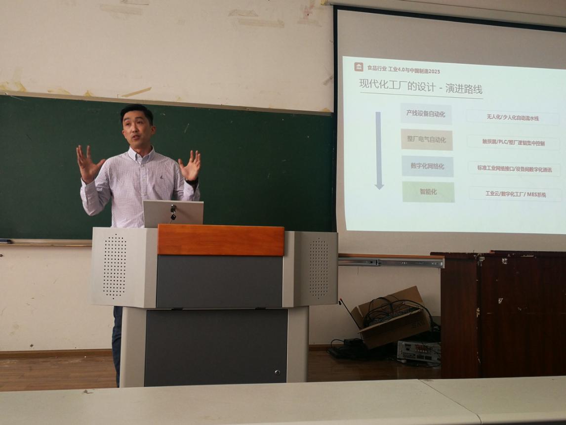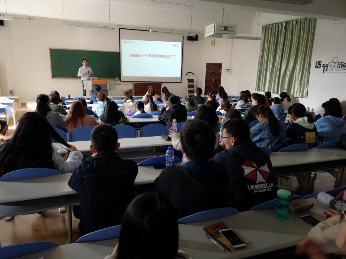 2019年4月4日下午,锦峰工程技术服务(成都)有限公司刘昊义总经理应邀在纺工附楼205学术报告厅,为奈菲影视食品系师生作了题为《现代食品工厂设计流程》的学术讲座。
