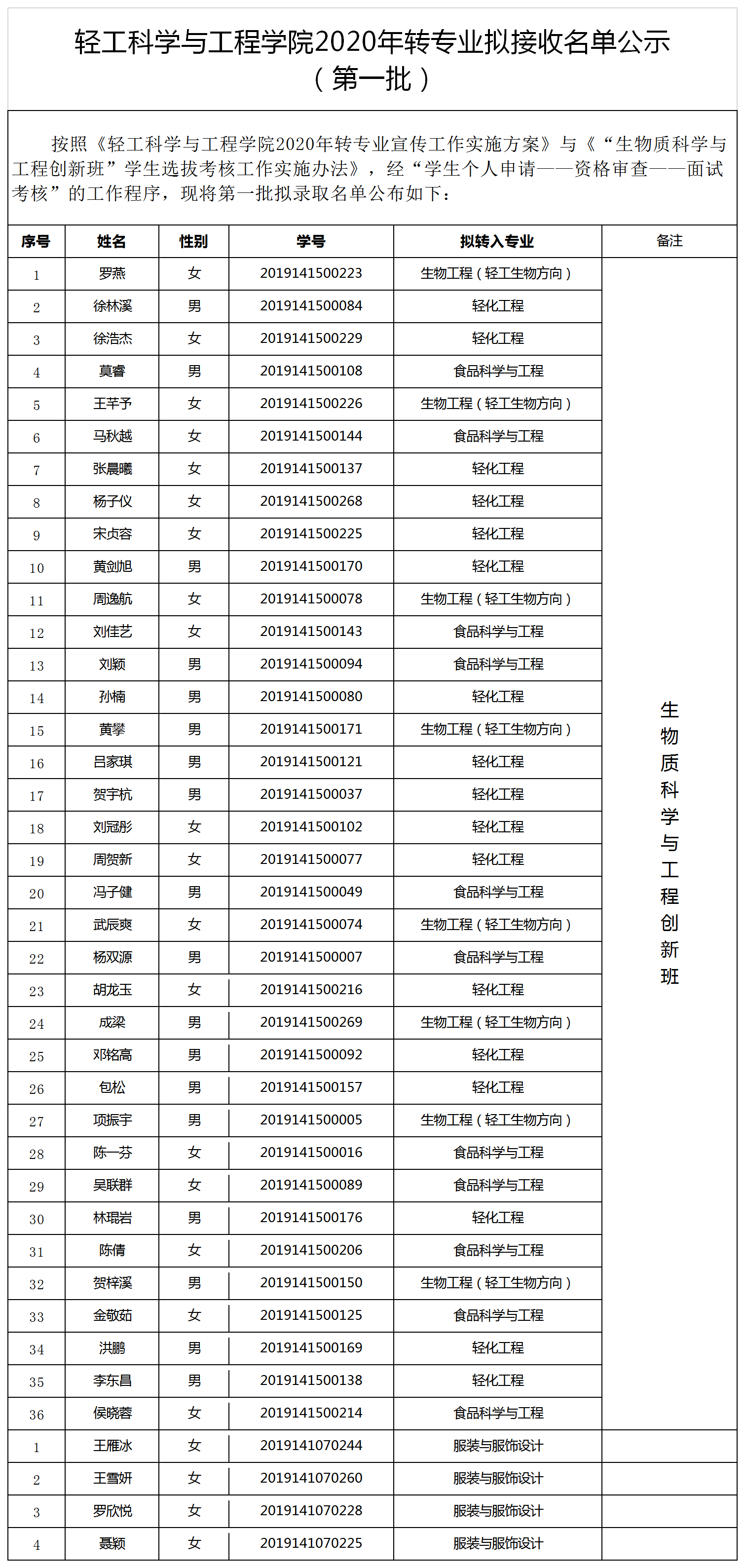 奈菲影视 2020年转专业录取名单公示(第一批)