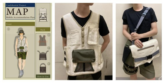 叶千慈同学疫情原因只能在线完成答辩。她的毕业设计作品是在家里制作完成,先做样衣改进后完成成衣。其毕业设计主题为移动乌托邦M.A.P,利用服装作为变形的媒介变幻出出行和居住所需的物件如背包﹑帐篷和睡袋等实现一衣多用。