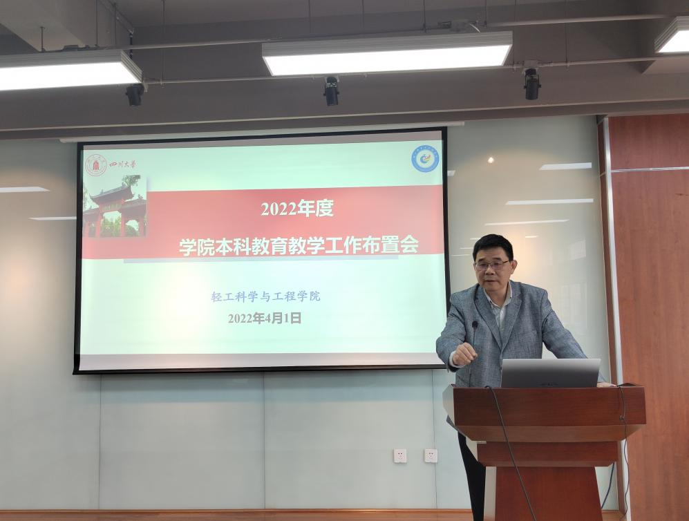 彭必雨院长首先传达了学校本科教育教学工作布置会相关会议精神,重点介绍了2022年度学校本科教育教学十二项重点工作:做亮川大风格通识教育、做优拔尖创新人才培养、做全课程思政的覆盖面、做精教育教学改革研究、做好人才培养方案修订、做大一流专业课程教材、做专创新创业教育升级、做严毕业论文质量管理、做硬教师教育教学水平、做新融合教育创新品牌、做实本科招生质量提升、做多国际交流合作途径。