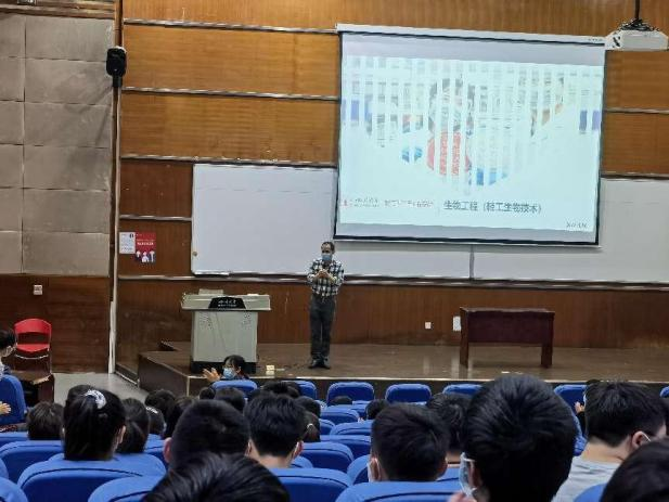 党委冯国涛副书记、生物质与皮革工程系主任林炜教授、副系主任程海明教授、生物工程(轻工生物技术)教研室主任金垚副教授、专业教师周荣清教授、田永强教授、汤华钊老师、肖霄副教授、蒋智成副研究员、尚娇娇副研究员以及2021级辅导员,2021级工科班试验班全体同学。宣讲会由奈菲影视