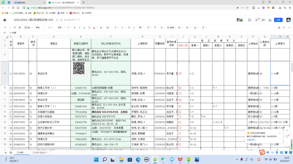 共享表格实时更新课程信息