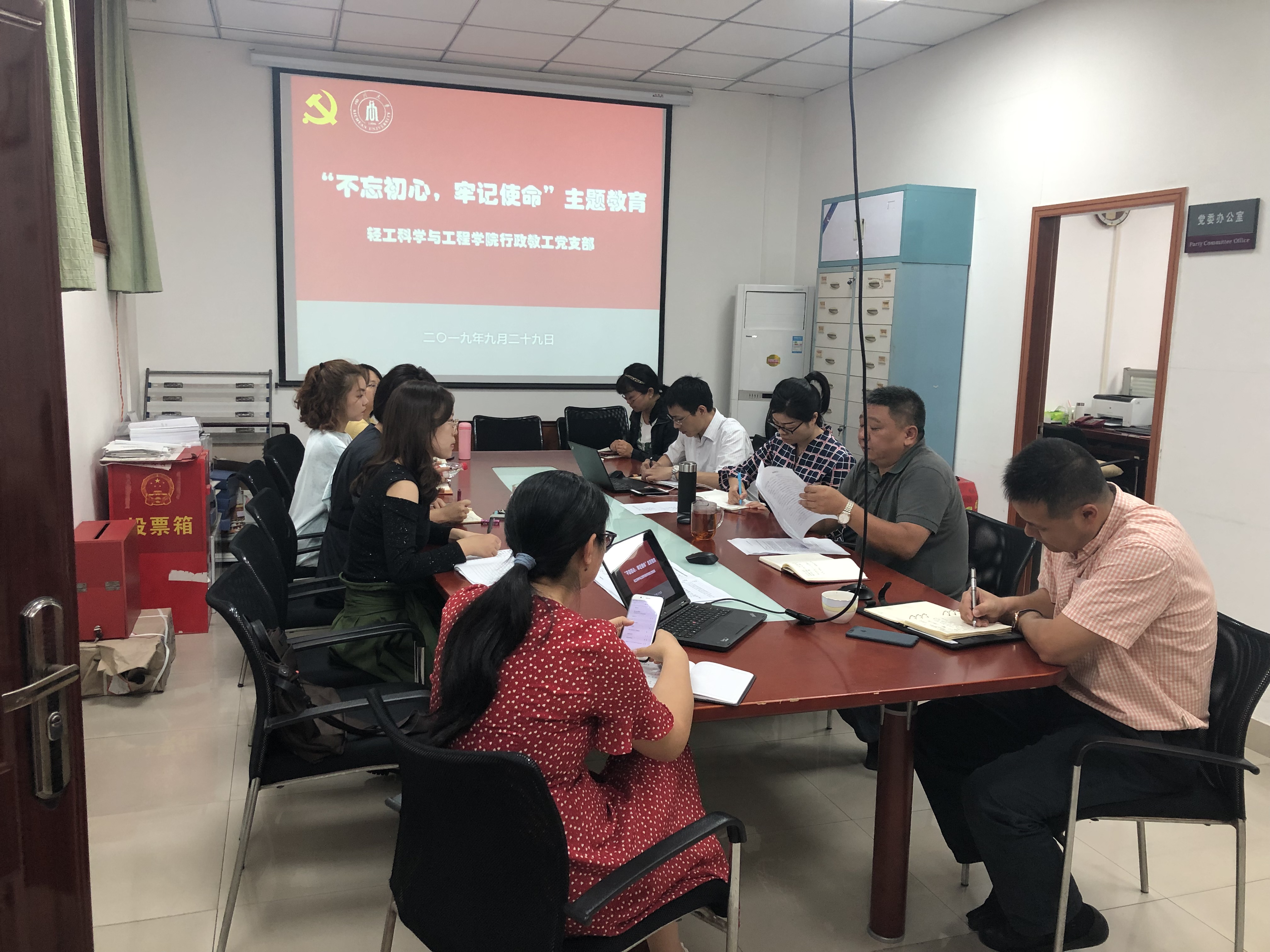 2019929日,行政教工支部在纺工附楼201开展了“不忘初心,牢记使命”主题教育活动第一次集中学习活动。活动开始,支部书记田彬介绍了此次主题教育活动的背景意义及具体要求,并强调下一步支部将按照校院两级党委的要求结合支部活动的开展,扎实开展好主题教育各项活动。支部党员同志围绕学习教育的具体安排及支部活动的开展进行了认真的讨论。讨论结束后,支部党员同志以视频学习的方式集体观看了习近平总书记在中央和国家机关党的建设工作会议和在中央党校(国家行政奈菲影视 )中青年干部培训班开班式上的重要讲话精神等两个视频。
