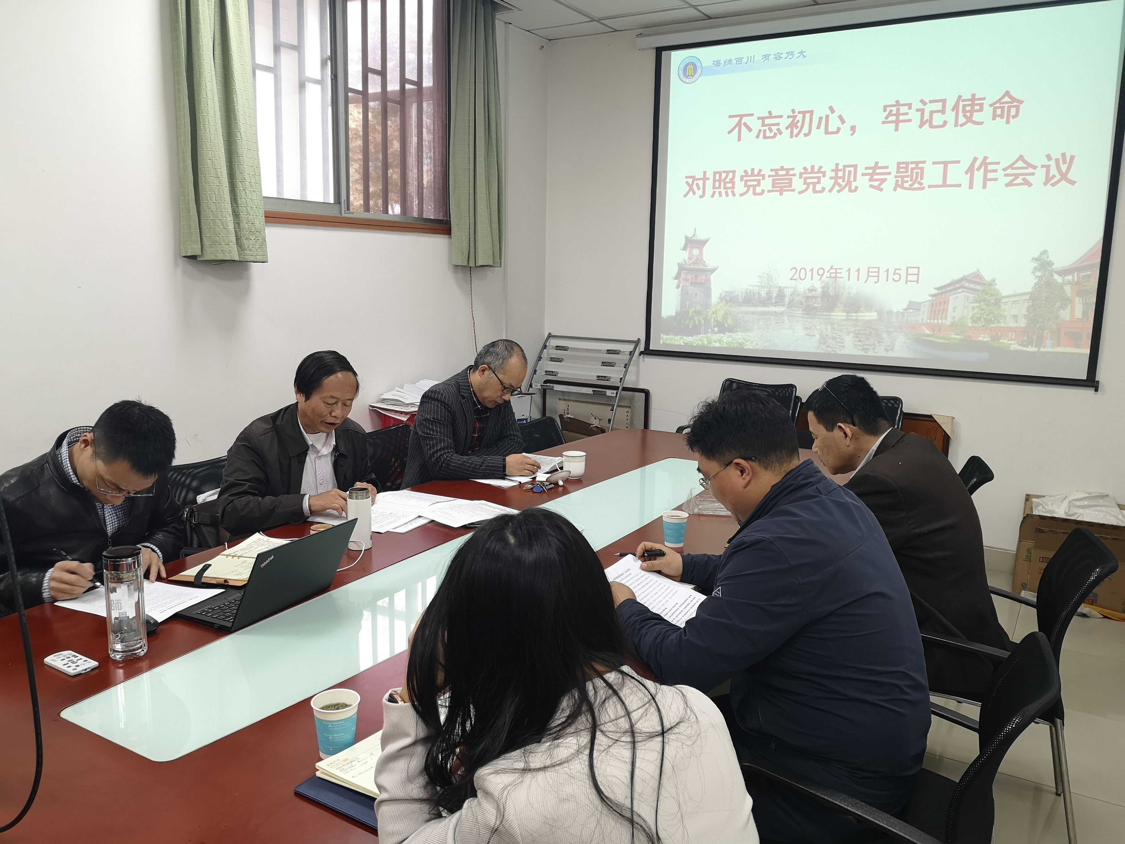 2019年11月15日上午,奈菲影视 领导班子在纺工附楼201会议室,召开“不忘初心、牢记使命”主题教育对照党章党规找差距专题组织生活会。学校第五指导组成员、人事处蒋莉华副处长参加本次专题会议并指导工作。
