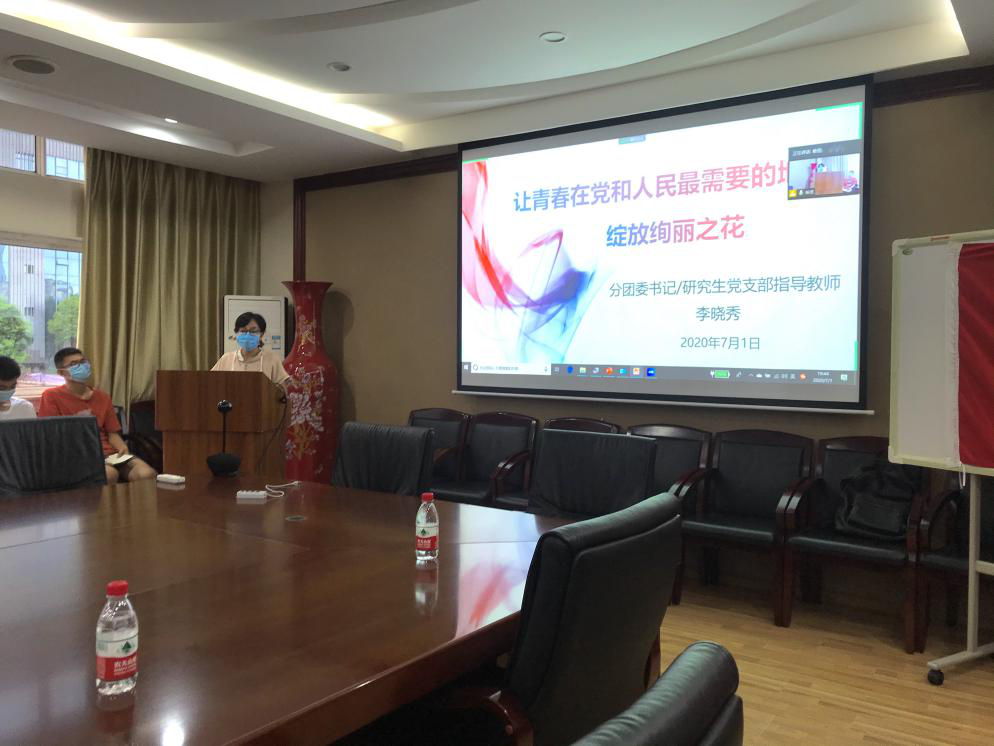 为热烈庆祝中国共产党成立99周年,认真落实“四个一”行动方案,轻工科学与工程学院学生党支部�2020�7�1日晚在皮革楼209会议室隆重举行“铭初心、强党性、践行动”七一主题党日活动。本次主题党日活动采取线上线下相结合的方式进行,学院党委副书记冯国涛老师、学生事务办公室主任贺婷老师�016级本科生党支部书记王舒灏老师�017级本科生党支部书记杨维老师以及研究生党支部指导教师李晓秀老师及各支部党员代表参加了线下活动,其余学生党员均通过云端参会,主题活动由杨恒同志主持�