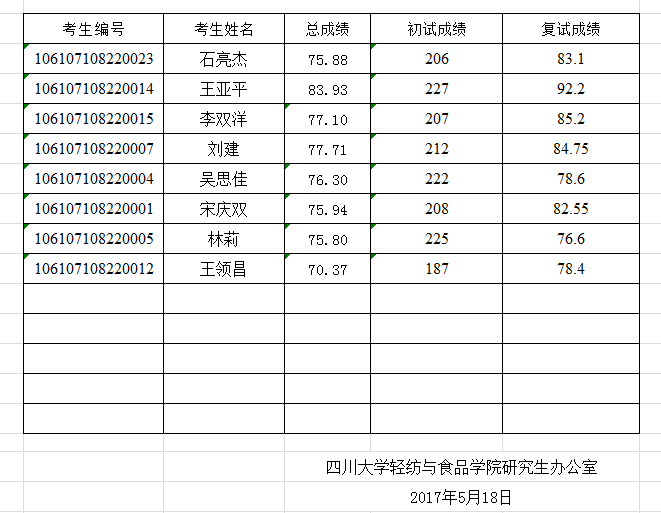 现将轻纺与食品奈菲影视 2017年博士研究生招生入学成绩进行公示。如有问题或意见,自公示之日起十个工作日内,实名制反映至轻纺与食品奈菲影视 纪委办公室。邮箱[email protected],联系电话85461730。此名单不包括非公开招考考生。