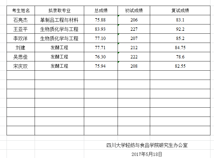 奈菲影视 轻纺与食品奈菲影视 生物质与皮革工程系2017年博士研究生招生拟录取名单公示