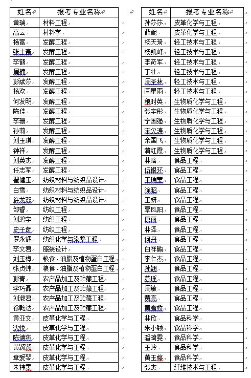 皮革化学与工程 发酵工程 生物质化学与工程 轻工技术与工程 革制品工程与材料 |