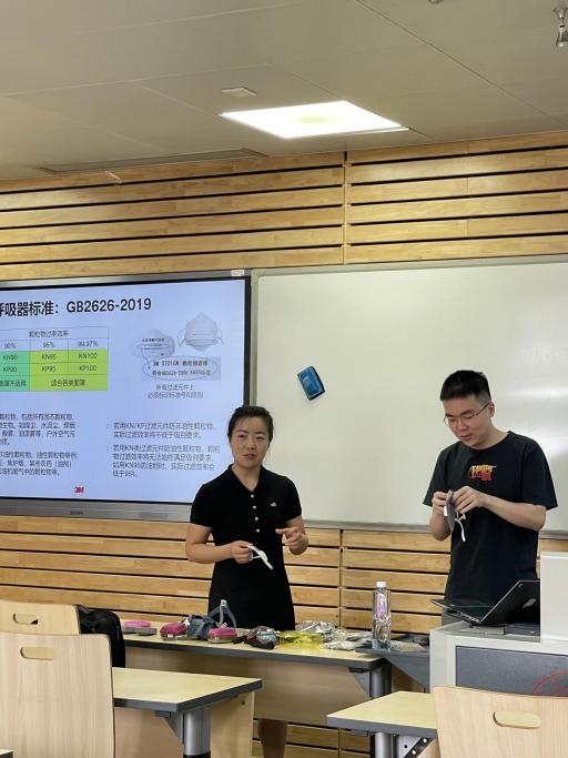 2023�5�30日上�8:00�11:45,在四川大学望江校区基础教学楼A座A503室, 3M中国有限公司西部技术中心的张霞工程师作为授课专家,�019级本科生做了“个人防护和实验室安全”专题讲座。该讲座介绍了许多个人和实验室安全防护的方法和措施。同学们通过试用课堂上的个人防护用品,掌握了常用的安全防护品的使用方法,进一步增强了安全防护意识�