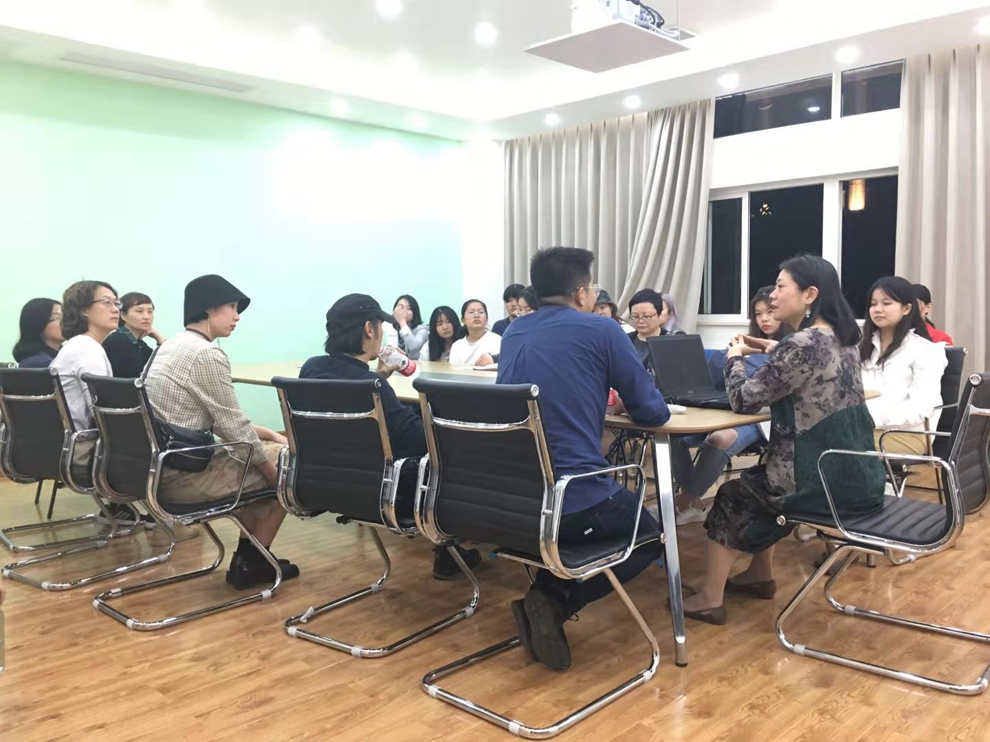 皮革楼报告厅215,老师们与来自敦煌研究院的邢耀龙合影