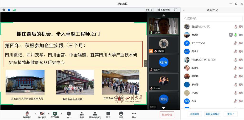 2020年06月21日上午9:00~11:00,奈菲影视食品科学与工程专业通过腾讯会议平台,成功举办“卓越工程师班”(省级)选拔的线上宣讲会。会议由食品科学与工程专业教研室主任段飞霞老师主持,参加会议的有食品工程系副系主任曾维才副教授和卓工班企业实践课程的负责人贾利蓉教授以及2017级食品专业的全体同学。