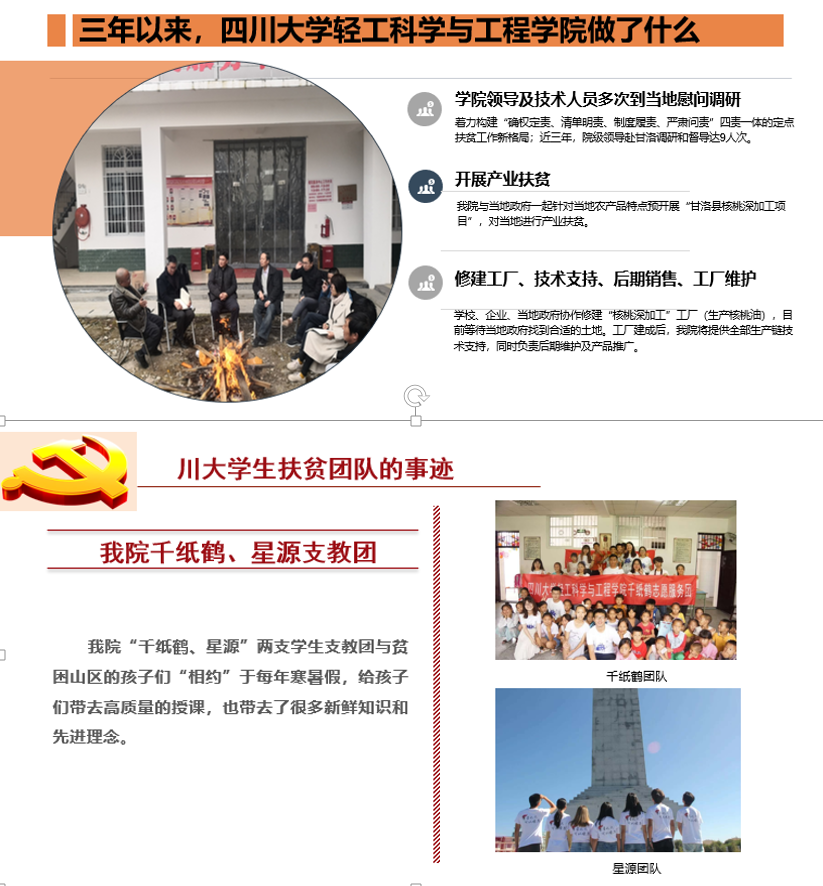 扶贫工作的开展并辅以具体事例讲解,如学校扶贫干部在四川凉山彝族自治州甘洛县挂职工作事迹、奈菲影视