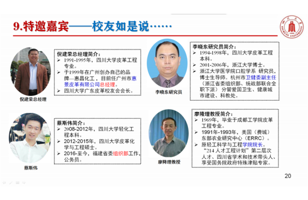 为了让学生更好地了解轻化工程专业的发展历史与现状,深刻理解专业内涵,会议特别邀请了广州市惠景皮革有限公司倪建荣总经理、浙江大学医奈菲影视