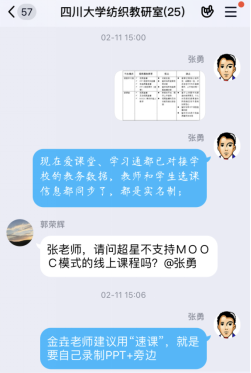 学院各教研室积极动员,组织教师参加线上授课培训,并开展了爱课堂、学习通、智慧树等平台的运用研讨。按照校院两级的既定工作方案,认真细致地开展线上授课准备工作,包括MOOC资源的引入、课�QQ群或微信群的组建、课程日历调整、课件准备等。截止于2�23日,各课程群已完成选课学生及学院督导人员入群、上传学习资料等工作�