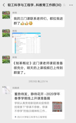 学院�2�2日开始着手准备线上教学的相关工作��2�5日制讀�2020年春季学期教学工作预案��2�11日�2�17日两次召开本科教学工作电话会议,对线上教学相关工作进行了研讨,明确做好师生的全员发动,学生健康状况及学习条件的摸底,组建线上教学技术支持工作群、轻�MOOC+课程研讨群、轻工腾�+课堂互助群,制定平台崩溃及学生保障条件不足等极端情况下的工作预案,做好教学督导等教学组织工作重点,根据线上教学的特点和培养工作链条,指导各系、教研室、课程组继续开展与线上教学相关的各项工作�
