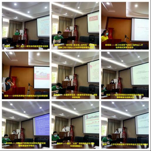 其它9个项目的负责人从研究思路、创新点及所取得的成果等方面,分别进行了精彩汇报与分享。项目涵盖了学生思政、课堂教学方法、实验课程授课方式和大学生创新创业及科研训练等多个方面的改革。项目评审组成员认真地对每个项目进行了点评,并通过认真讨论,形成了每个项目的结题初评意见。