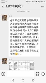 本科教务员将不能按时返校的学生信息发送给相关课程老师,提醒老师做好相关学生的线上教学安排。