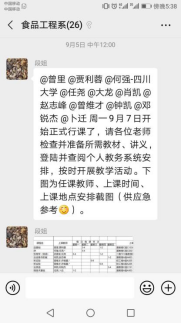 本科教务员将不能按时返校的学生信息发送给相关课程老师,提醒老师做好相关学生的线上教学安排。