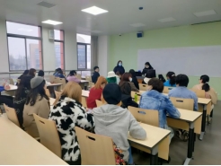 其次,年级大会首先由余昕玲老师对学生在上一学期的专业整体学习情况进行了分析与纵横对比,然后由教师和优秀学生代表进行了经验分享。