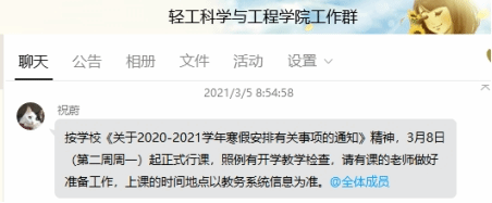 通过QQ群提醒教师做好上课准备