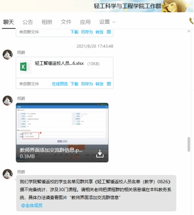 学院将不能按时返校的学生信息发送给相关课程老师