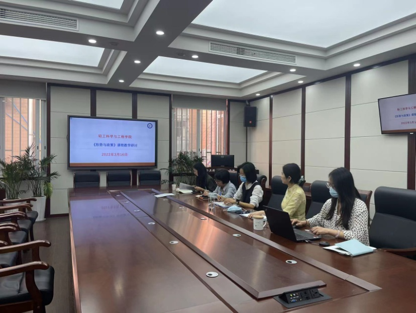 形势与政策教研室在纺工附楼205进行了2022年春季学期形势与政策课的集体备课研讨会。学生事务办公室主任、2019级本科生辅导员贺婷老师,团委书记、研究生辅导员李晓秀老师,2018级本科生辅导员杨维老师,2020级本科生辅导员余昕玲老师,2021级本科生辅导员王舒灏老师一起参加了备课研讨。