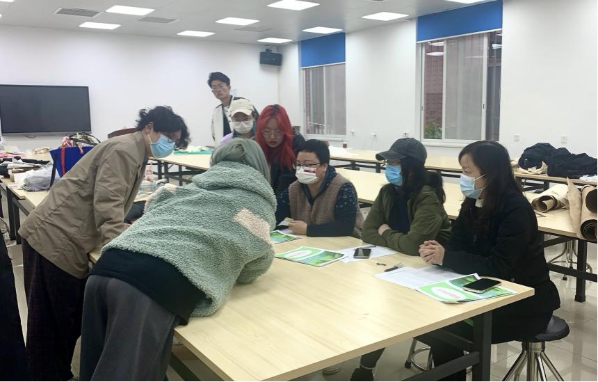 在中期检查现场中,参赛选手们与老师进行了充分的交流与讨论,老师们积极热心的为选手们答疑解惑,并提出了中肯实用的建议。此次衣秀杯中期检查活动使同学们受益颇多,促进了参赛选手的服装设计能力的提升。