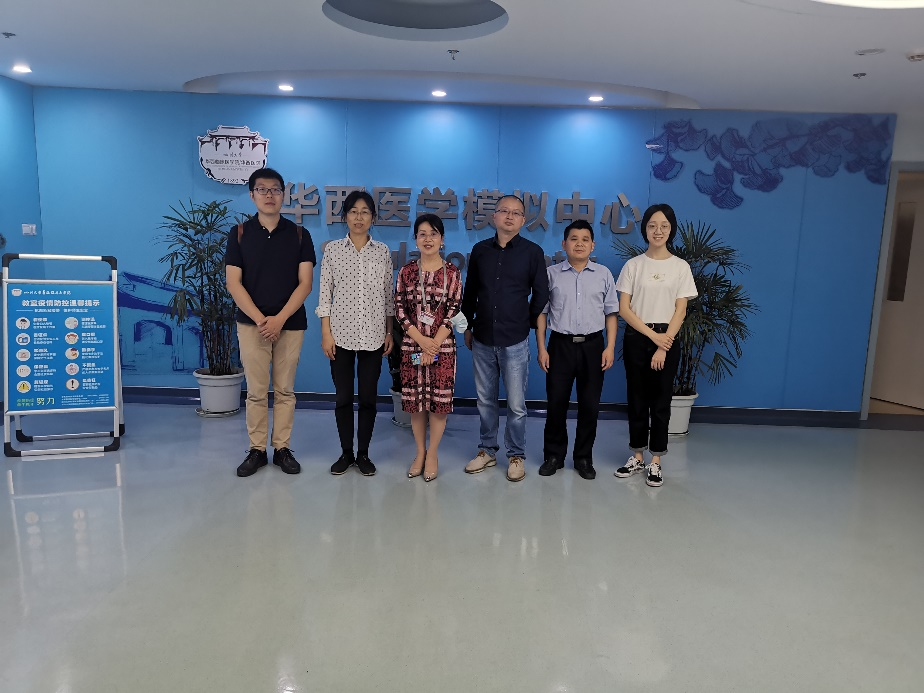 医学模拟中心,详细咨询了心肺听诊触诊仿真标准化病人、情景化腹腔镜智能一体化教室、情境模拟教学中心等在本科生、硕士生、博士生、临床医生教学以及对外培训中的应用情况和效果。双方共同讨论了模拟与仿真、硬件设备、平台管理等问题。
