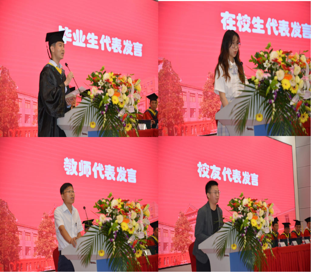 2014届轻化工程专业本科毕业生�2020年福布斯“亚�30岁以下精英榜”上榜者,薪太软合伙人、首席产品官朱彬同志作为校友代表发言。他首先祝贺学弟学妹顺利完成学业,开启人生的新篇章,并从“选择、韧劲、合作”三个关键词分享了人生感悟,勉励学弟学妹们牢记川大校训:海纳百川,有容乃大�