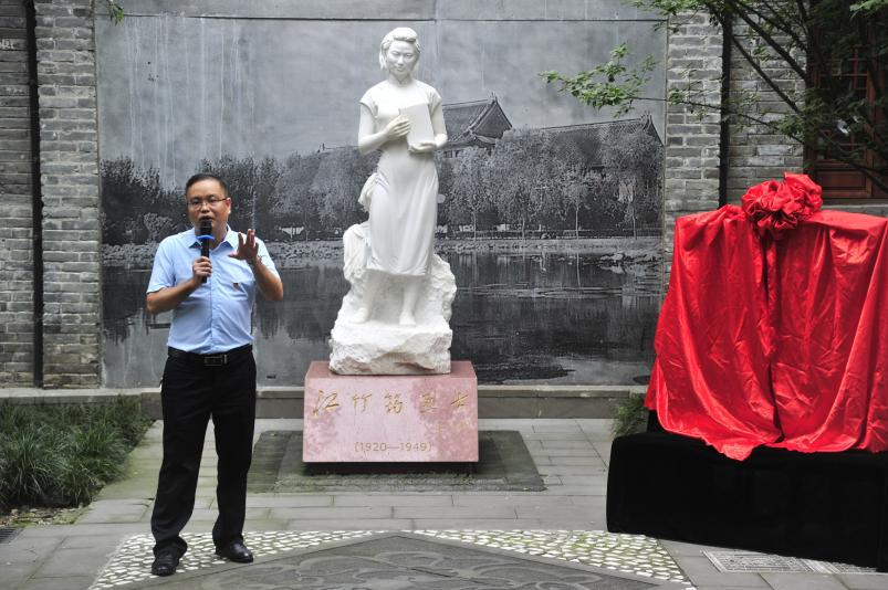 首先�四川大学档案馆(校史办公室)副主任冯兵教授致辞。他对四川大学轻工科学与工程学院党委及纺织服装党支部表达了感谢,对我院�用好红色资源、赓续红色血脉、讲好红色故事”表示高度赞扬,对艺术创作传递红色思想的创新形式表示肯定,他认为作品《“秀”红旗》与江姐纪念馆建馆主旨相契合,是科学性、政治性、艺术性的共同体现,也是“不忘初心,牢记使命”主题精神在立德树人教育事业中的体现�