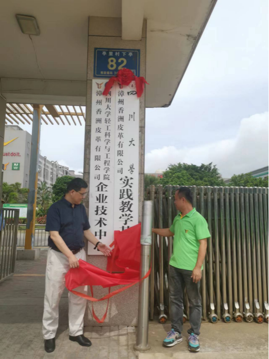 2022718日至19日,四川大学轻化工程专业实践教学基地揭牌仪式在福建省漳浦县赤湖皮革工业园隆重举行,轻工科学与工程学院院长彭必雨教授、生物质与皮革工程系副系主任程海明教授、张金伟博士和三家企业领导以�2019级“卓越工程师班”学生出席了仪式。在揭牌仪式上,彭必雨院长代表四川大学分别与福建泰庆皮革有限公司、漳洲香洲皮革有限公司和漳浦致远皮革有限公司共同签订了校级实践教学基地建设协议书,为企业专家颁发了“卓越工程师计划”企业导师聘书,并与三家企业领导共同为校级实践教学基地揭牌�