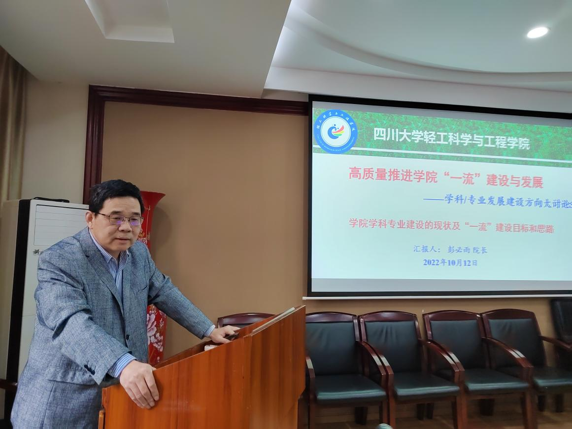 2022�10�12日下午,学院在皮革楼209会议室召开高质量推进“一流”建设与发展——学�/专业发展建设方向大讨论。石碧院士、学院班子成员、教授委员会成员、院本科教指委主要成员、各系所主任、专业负责人、教研室主任、科级干部等出席会议。本次会议由学院党委李天富书记主持�