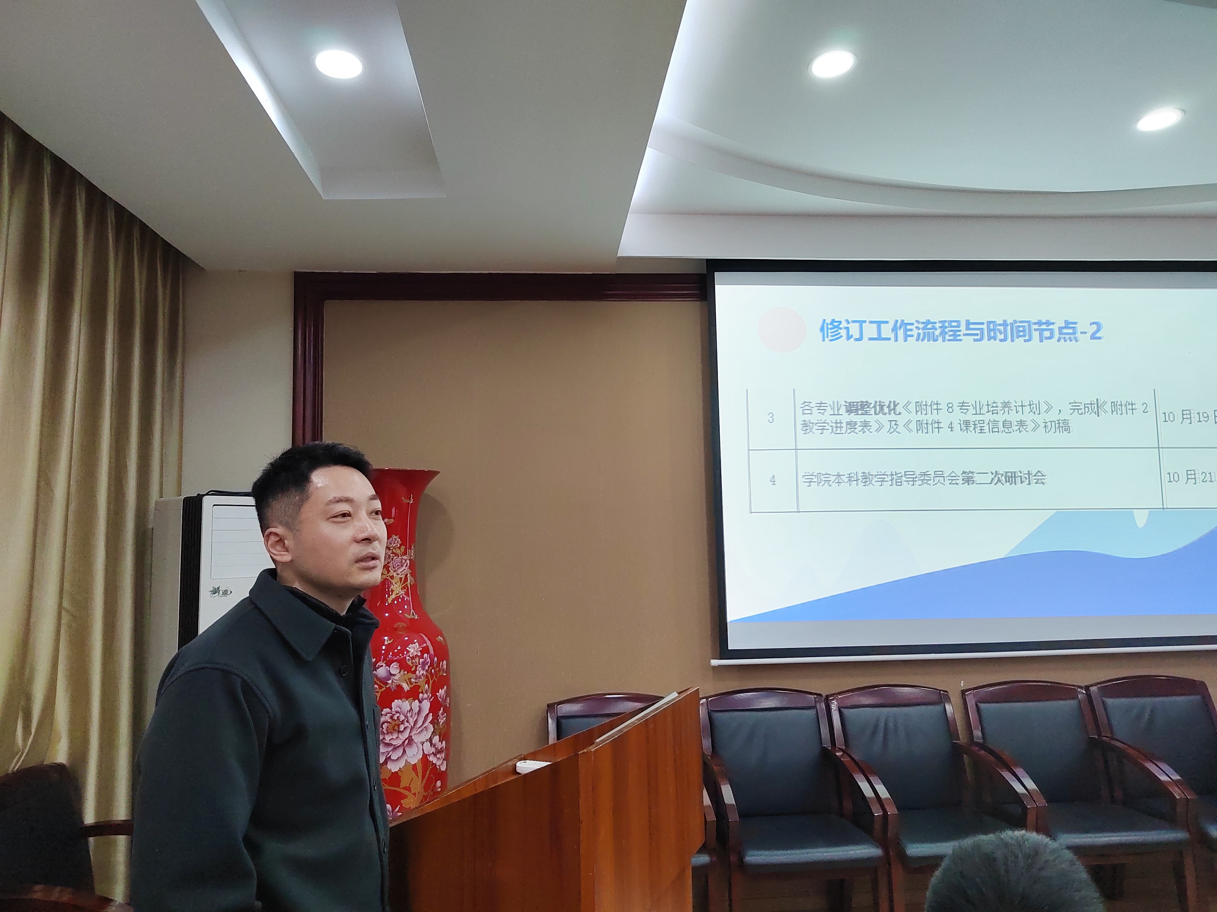 同时,陈意副院长结合新的教学计划修订具体要求介绍本科专业高质量建设措施,迟原龙副院长介绍研究生学科方向优化整合的思路及相关培养工作要求,冯国涛副书记介绍基于我院学生特点�“五育并举”、“三全育人”具体实施举措�