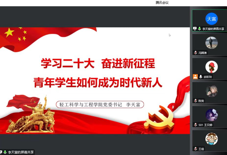 党委李天富书记为2020级本科生讲授“学习二十大,奋进新征程,青年学生如何成为时代新人”的形势与政策课。2020级辅导员余昕玲老师以及2020级全体本科生以线上的形式参加了本次学习。