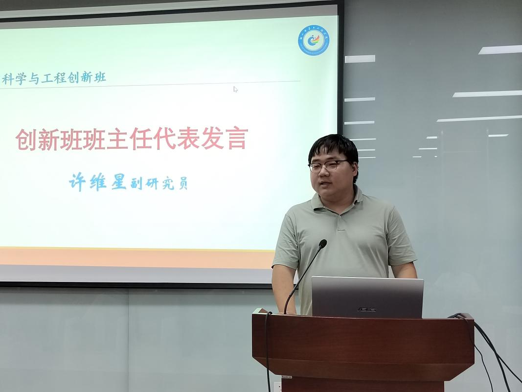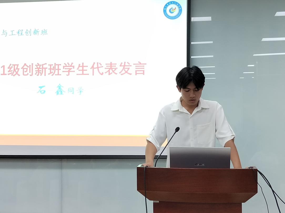 接下来,班主任许维星副研究员寄语同学们越努力、越幸运,在崭新平台上脚踏实地、不负时光�2021级创新班学生代表石鑫同学介绍了个人进入创新班平台后的成长经历,并分享了学习心得体会�