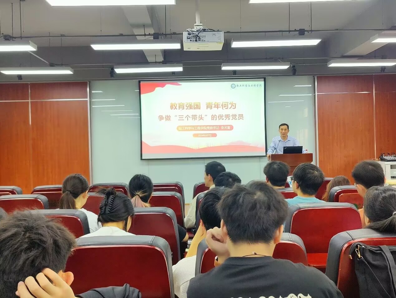 首先,李天富书记以党的二十大、二十届中央政治局第五次集体学习等重要内容与习近平总书记重要讲话精神入手,带领全体党员同志学习了新时代关于教育强国的重要论述,阐述了“三个一流”创建的时代背景。
