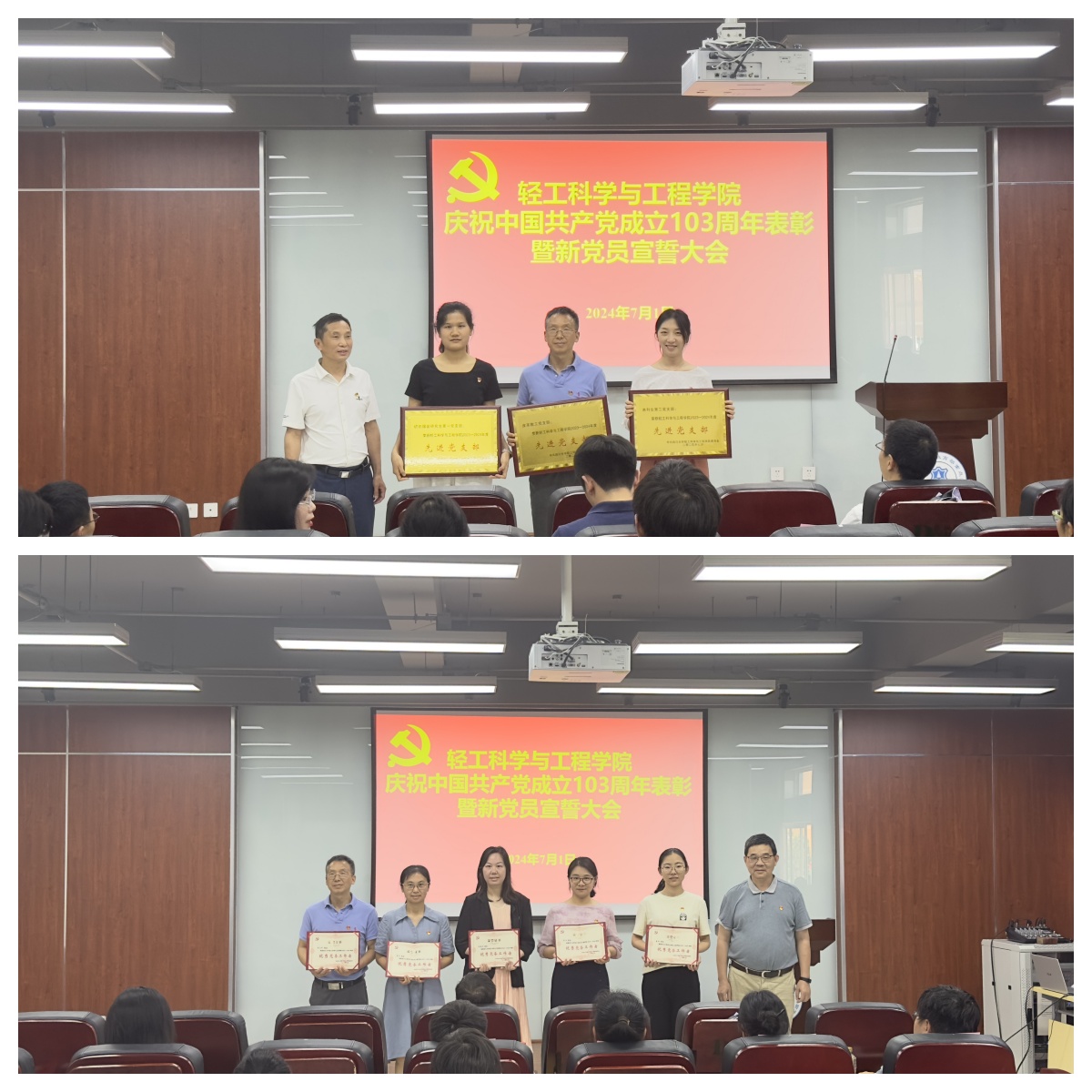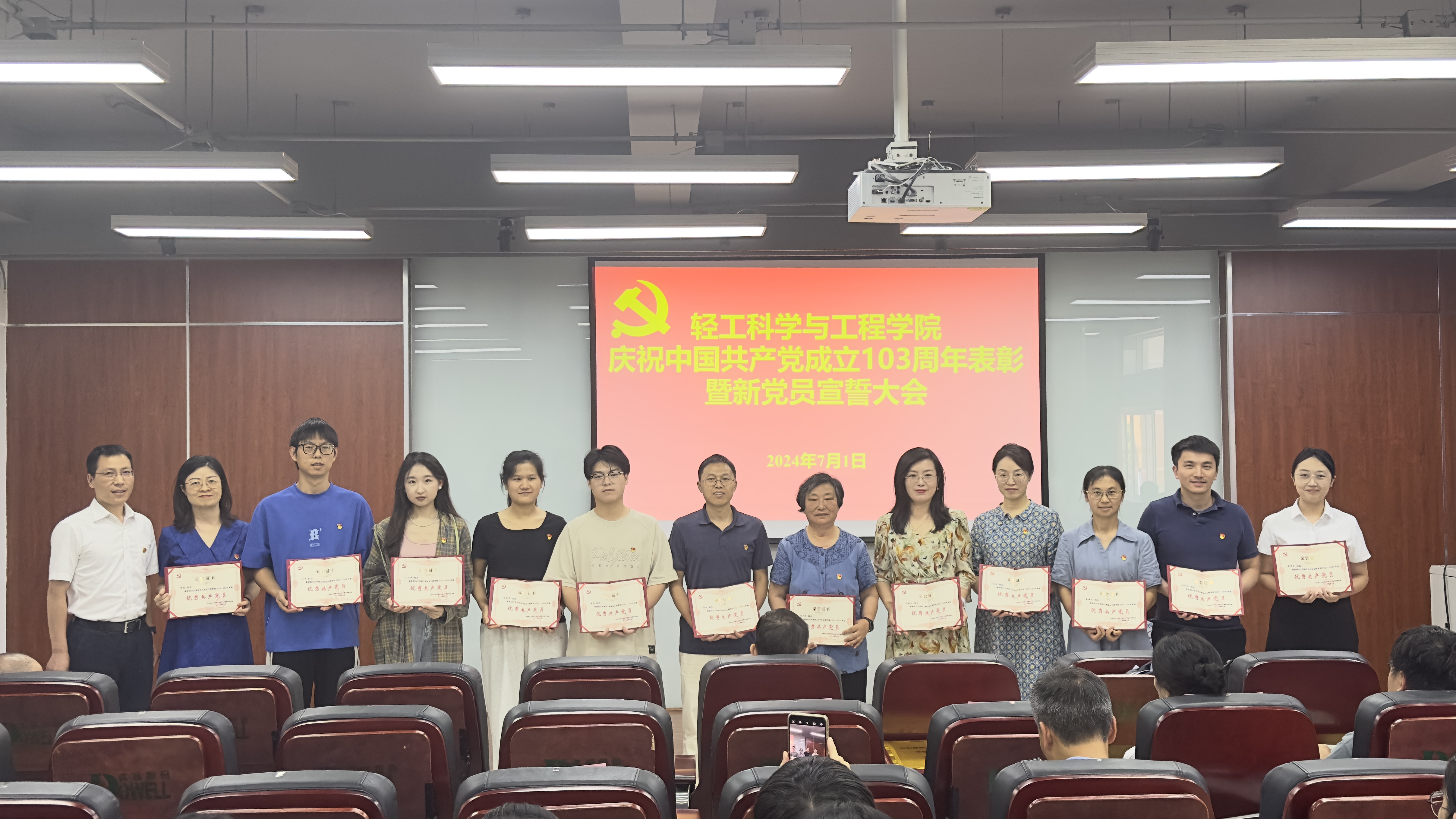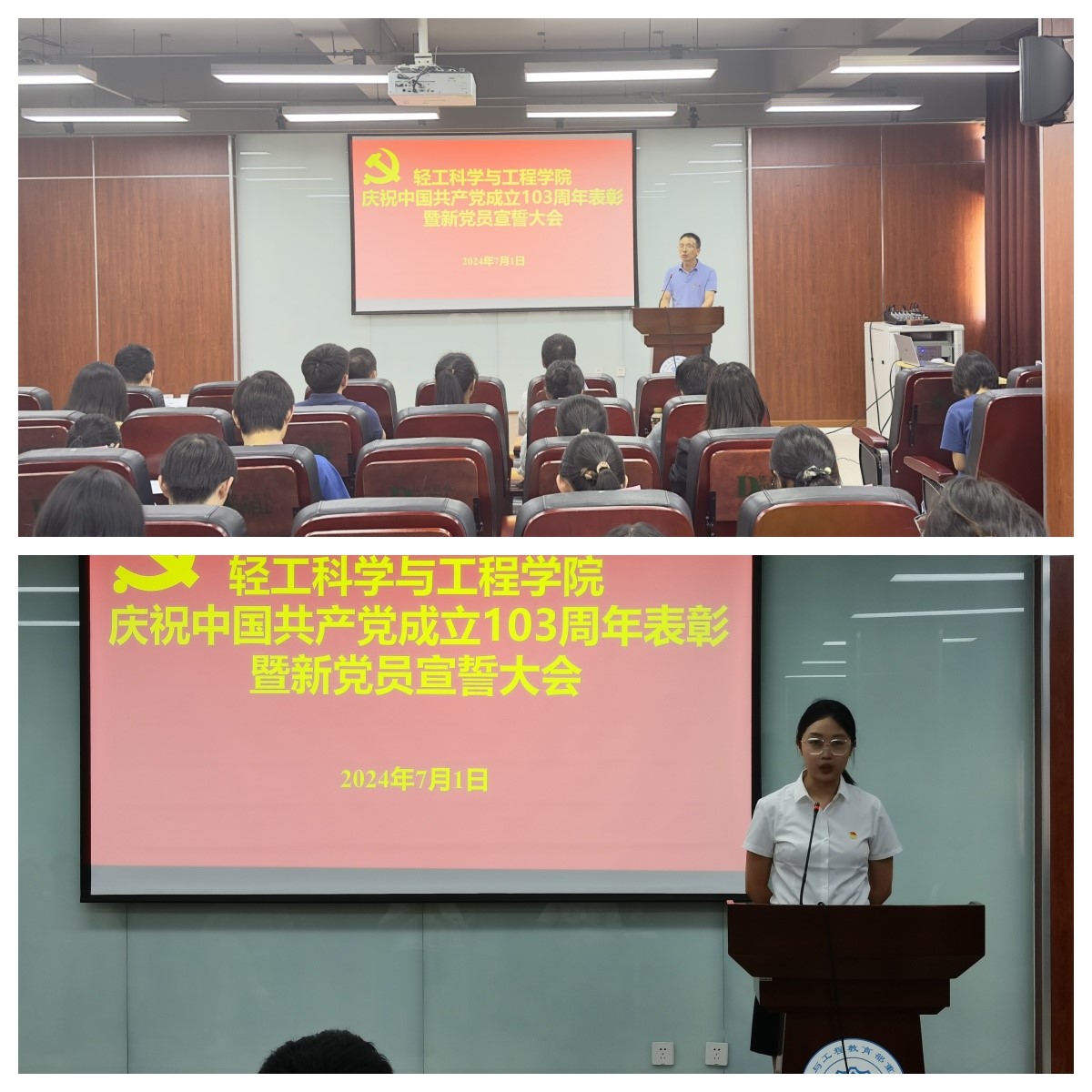 2024年7月1日下午,奈菲影视 在皮革楼215报告厅隆重举行庆祝建党103周年表彰暨党员宣誓大会。奈菲影视 班子成员、两委委员、支部代表、获奖支部、个人及新发展党员代表参加本次会议。会议由彭必雨院长主持。