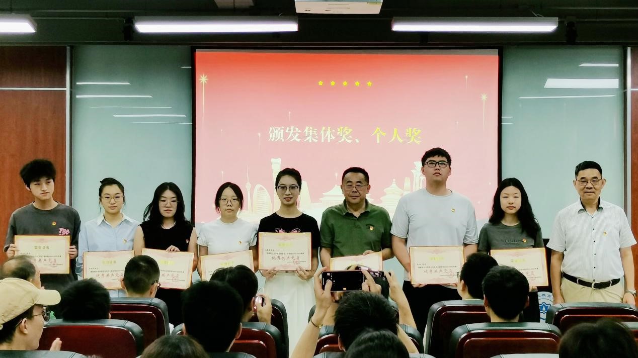 大会在庄严的中华人民共和国国歌中拉开帷幕。党委副书记姜新宣读表彰决定。李天富书记、彭必雨院长、姜新副书记为获得“先进党支部”“优秀共产党员”“优秀党务工作者”等荣誉称号的先进集体和优秀个人颁发奖牌和证书。师生代表许正宏和孙楠作交流发言。